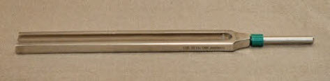 De frequentie en naam zijn goed leesbaar aangebracht. De stemvorken zijn voorzien van gekleurde ringetjes voor de herkenbaarheid van de toon.